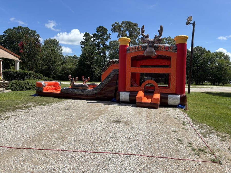 Make your next event unforgettable with our Bounce House Combo rental Buck Shot Wet-Dry Combo in Beaumont and surrounding area. Secure your date now and let the jumping, sliding, and laughter begin! 🥳 Contact us today to reserve the ultimate hunting-themed bounce house experience for your celebration!